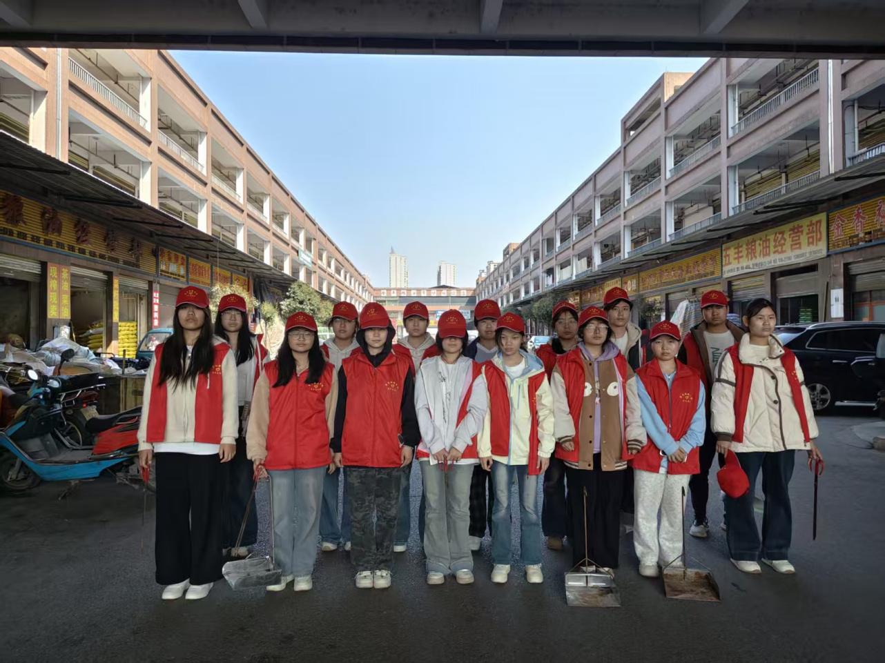 为响应怀化国家卫生城市,国家文明城市创建,进一步传承雷锋精神,弘扬"奉献、友爱、互助、进步"的志愿服务理念。3月13日中午商贸旅游学校组织16名志愿者前往金穗社区隆平国际粮油市场帮扶点,开展了环境卫生清扫学雷锋志愿活动。