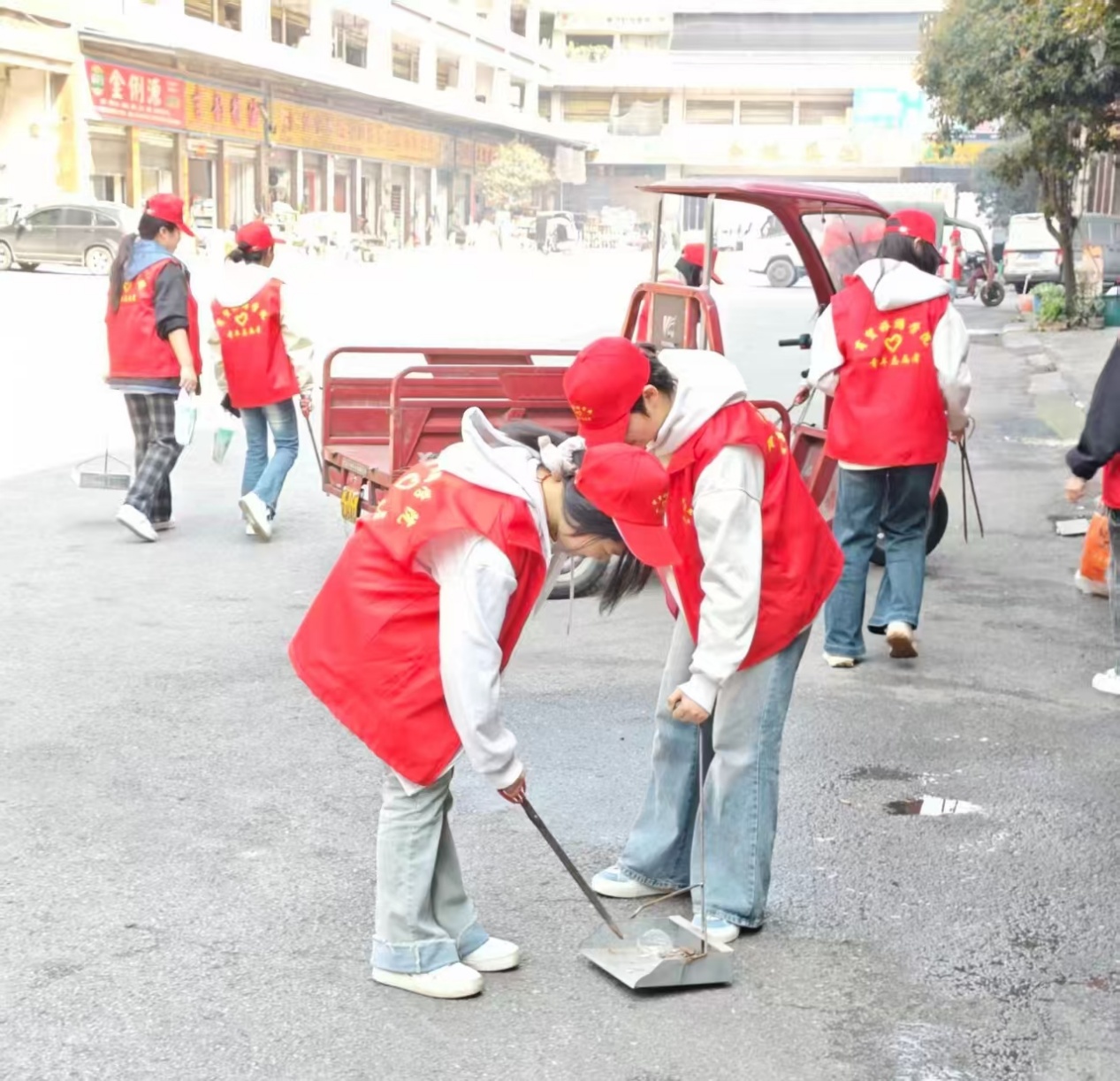 图1志愿者们正在清扫路面
